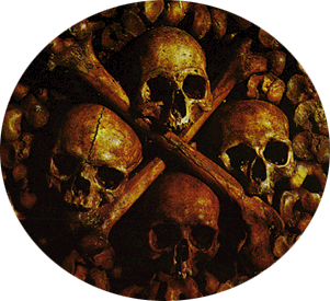 Layered between the famous Parisian metro and the infamous Parisian sewers is an immense network of underground passageways know as the Catacombs. Originally, the Catacombs were quarries. From as far back as the middle ages, Parisian masons dug their stones out of the ground to build their grand chateaux and cathedrals as well as their more modest little houses thus creating an expansive system of tunnels. The quarries were worked for centuries without supervision until the authorities banned their operation in 1810 after a series of catastrophic cave-ins. In 1785, the city officials decided to use the quarries as burial grounds. The bones of some six million skeletons were moved there from overcrowded cemeteries considered to be health hazards. Among their ranks were the rattled bones of Rabelais, Pascal, Montesquieu, and the Mansard Brothers. The ossuary workers had a bizarre artistic temperament. They amused themselves by stacking the bones in macabre skull-and crossbones arrangements. Technically, the term "Catacombs" refers to the 11,000 square meters of ossuary known as the Empire of the Dead. However, in the folklore of the people, all 300 kilometers of tunnels from the original quarries also carry the appellation "The Catacombs of Paris".